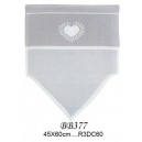 Petit rideau brise bise. Finition broderie mécanique. Motif "petit coeur" Voilage fin matiére 100 % polyester. Dim 45x60 cm.