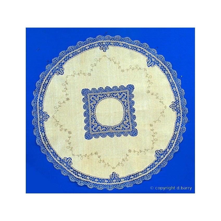Nappe de table en toile de coton et dentelle au fuseau fait main, diam: 90 cm ref: Augusta n°8