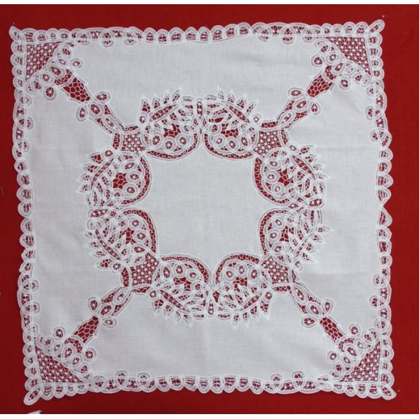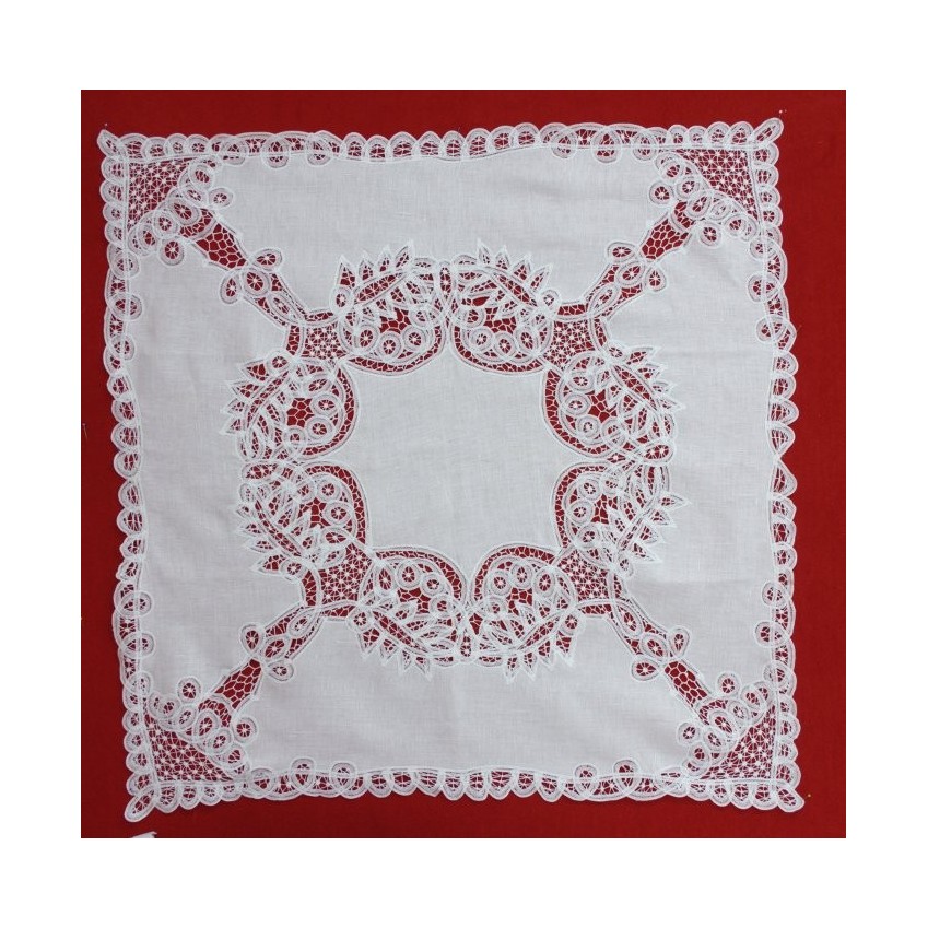 surnappe en dentelle de luxeuil toile de coton blanc dim: 80 x 80 cm