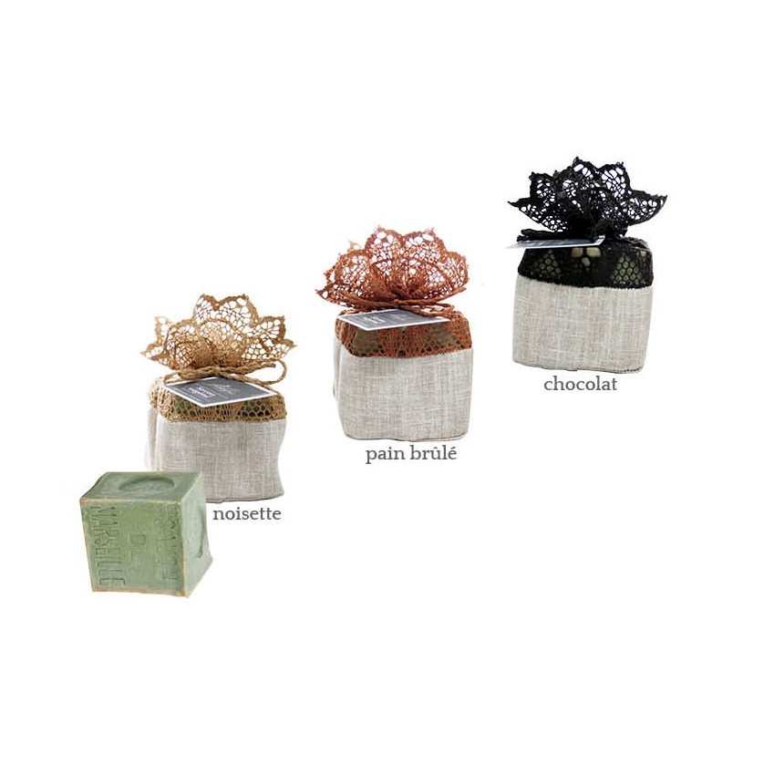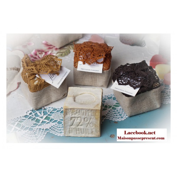 Aumonières savon en dentelle.