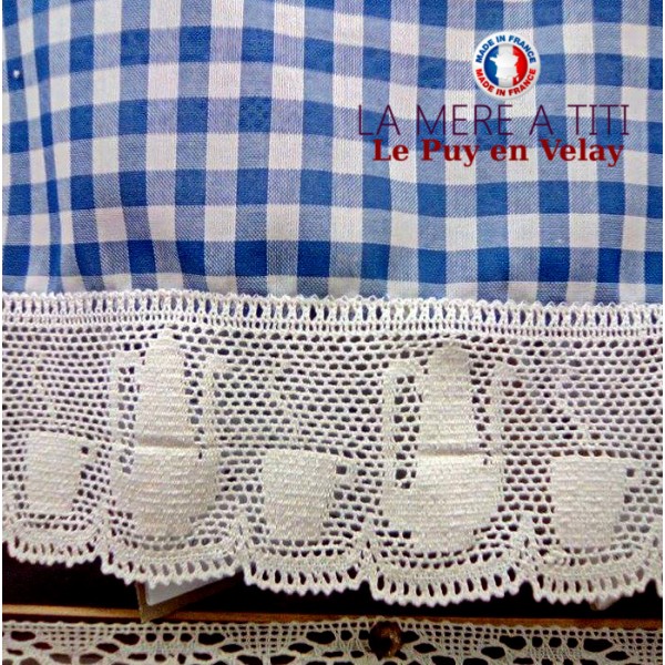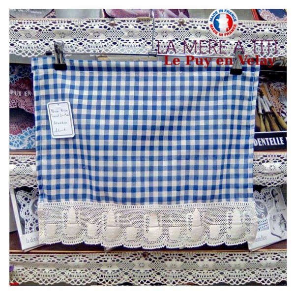 Théme vichy bleu bordé d'une dentelle mécanique.
