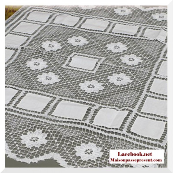 surnappe coton en dentelle filet à l'aiguille, dim: 80 x 80 cm