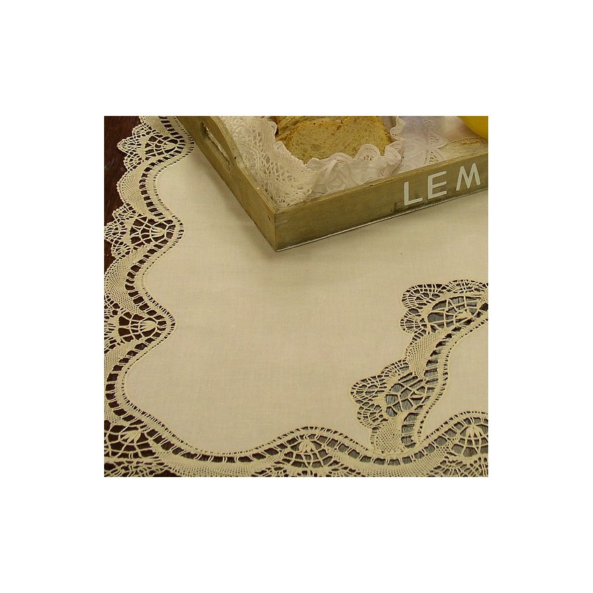 Attention: le modéle est ajouré de dentelle dans l'angle à partir de la taille 50x110 cm